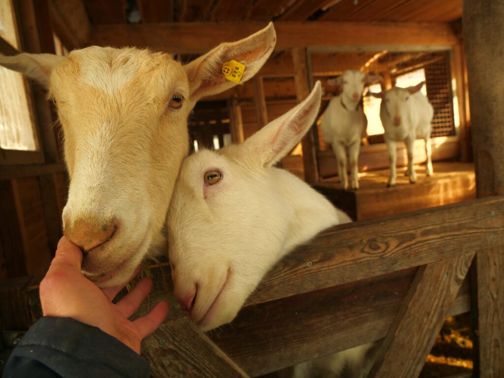 商業的な観光牧場ではないですが、異人は大歓迎です。山羊達と僕の心と懐をぜひ温めに来てください。時期・時間帯によりますが、乳搾り、餌やり、うんち掃除など、いろんな重労働を「体験」の名目でやらされかねないので、しっかり断れる心構えで来てください。